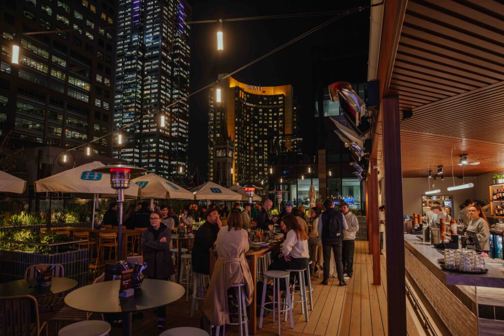 The corner of Russell and Little Collins has come back to life. After a $12 million transformation, a historic CBD pub has reopened as the Hickens Hotel – a four-level playground of nostalgic charm, rooftop drinks, retro sport culture and hearty pub eats.