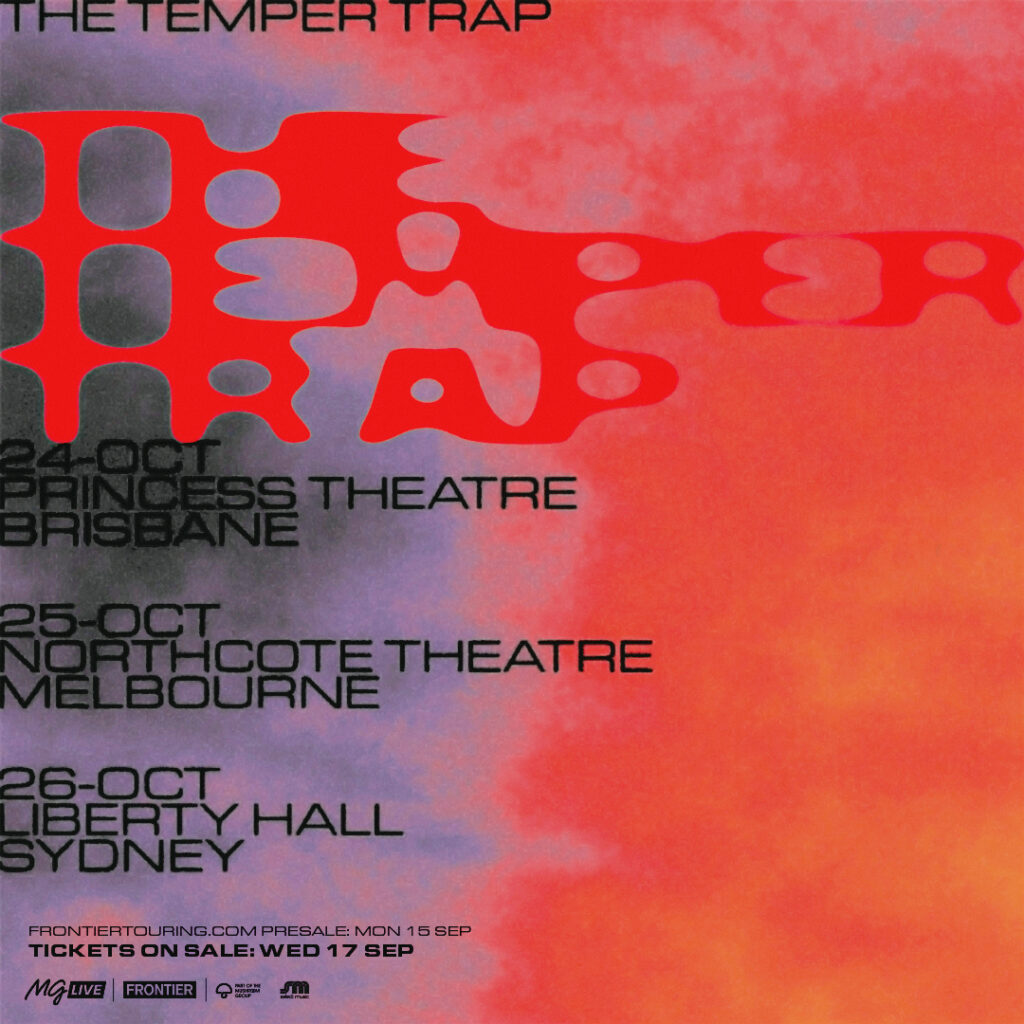 Tickets go on sale Wednesday 17 September at 2pm AEST via frontiertouring.com/thetempertrap, with a Frontier members presale starting Monday 15 September at 2pm AEST.