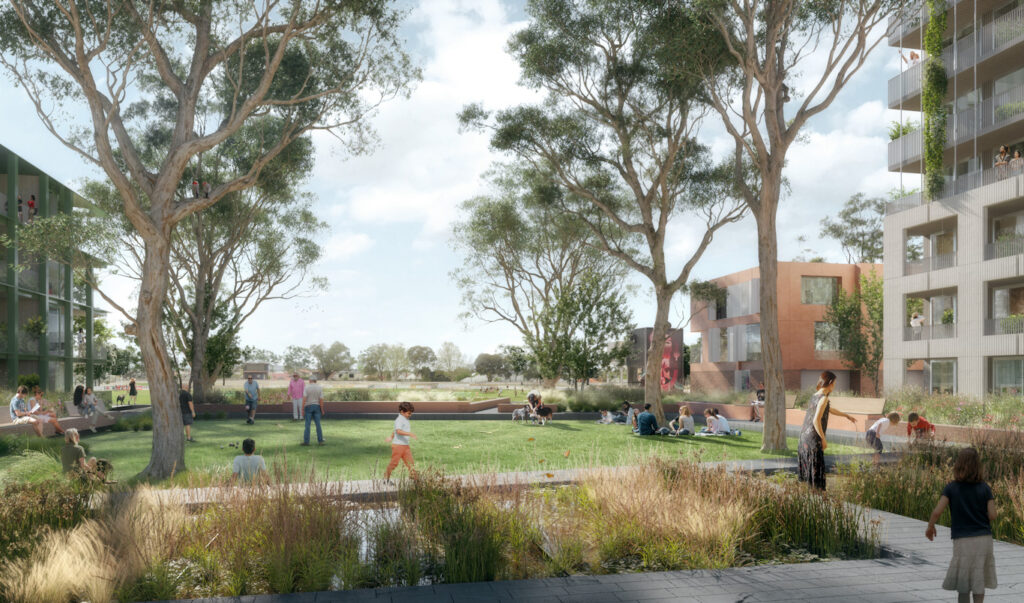 Fifteen buildings are proposed across six development sites, ranging from three to 18 storeys, while over 6,000 square metres of new public space would include a major piazza, pocket parks, courtyards and a neighbourhood park. Around 900 car spaces are also planned within walking distance of key destinations.