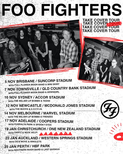 From Brisbane to Perth, then over to Christchurch and Auckland, Dave Grohl and co. are set to take over some of the biggest stages in the region. For a band that’s long treated Australia like a second home, this isn’t just another lap. It’s a full-scale stadium sweep, which means massive production, louder singalongs and tens of thousands screaming every word back at them.